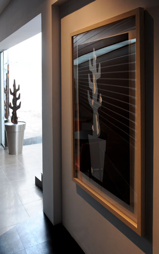Khalid Farhan displays his new experience in this building with his sculpture and collage works using copper and chrome as raw materials. His sculptural works are characterized by the nation of the abstract using the brown color as reference to the coffee.