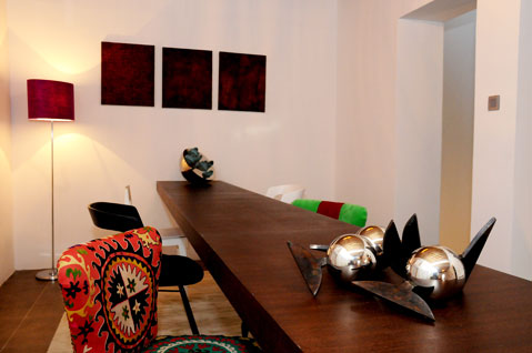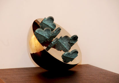 Khalid Farhan displays his new experience in this building with his sculpture and collage works using copper and chrome as raw materials. His sculptural works are characterized by the nation of the abstract using the brown color as reference to the coffee.