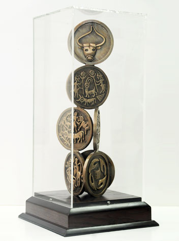 His works of art depends on the wood, stone and copper and they are characterised by the making of spheres and hemisphere is apparent in his works which means the duality between two persons of among other group
