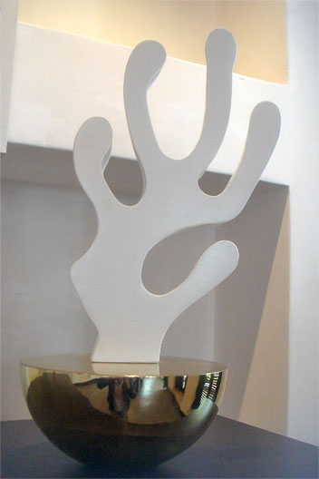 He considers the scientist "Freud" the key to his sculpture works since he is inspired by Freud's vision which state that the straight lines stand for the man and the lenient (wavy) lines for the woman.